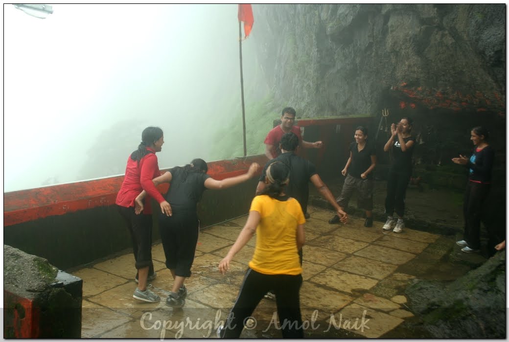 थोडे फ़ोटो काढून झाल्यावर तिथल्याच मोकळ्या जागेत चक्क कब्बडीचा डाव सुरू झाला. मी तर अगदी जोशात आलो होतो, इतका की प्रशांतला पकडीत घेताना त्याच्या टी-शर्टची एक बाही पार फ़ाडून टाकली. सामना अतिशय रंगात आला असताना प्रियांकाने केलेल्या चिटींगमुळे त्यांचा संघ बाद झाला आणि आम्हाला निर्विवाद विजय मिळाला.